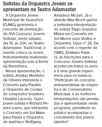 Solistas da Orquestra Jovem se apresentam no Teatro Adamastor